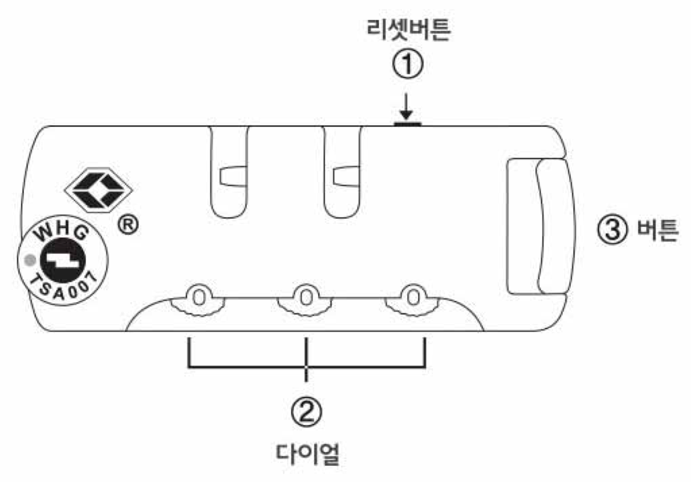 본 TSA 자물쇠는 제품 수령시 번호 0-0-0으로 초기화 되어 있습니다.